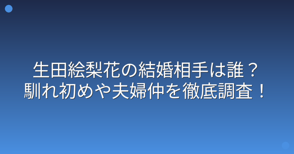 生田絵梨花の結婚相手は誰?馴れ初めや夫婦仲を徹底調査!
