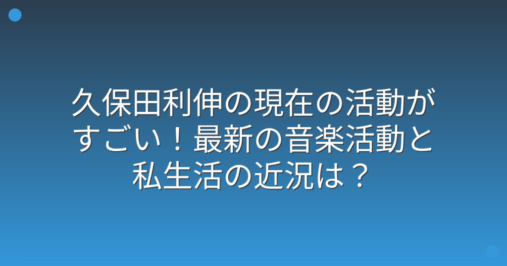 日本のR&B界を代表するアーティスト、久保田利伸さんの現在の活動が話題になっていますね。 デビューから40年近く経った今でも、精力的に音楽活動を続けている久保田さんですが、最近はどのような活動をされているのでしょうか。 そこで今回は、久保田利伸... -