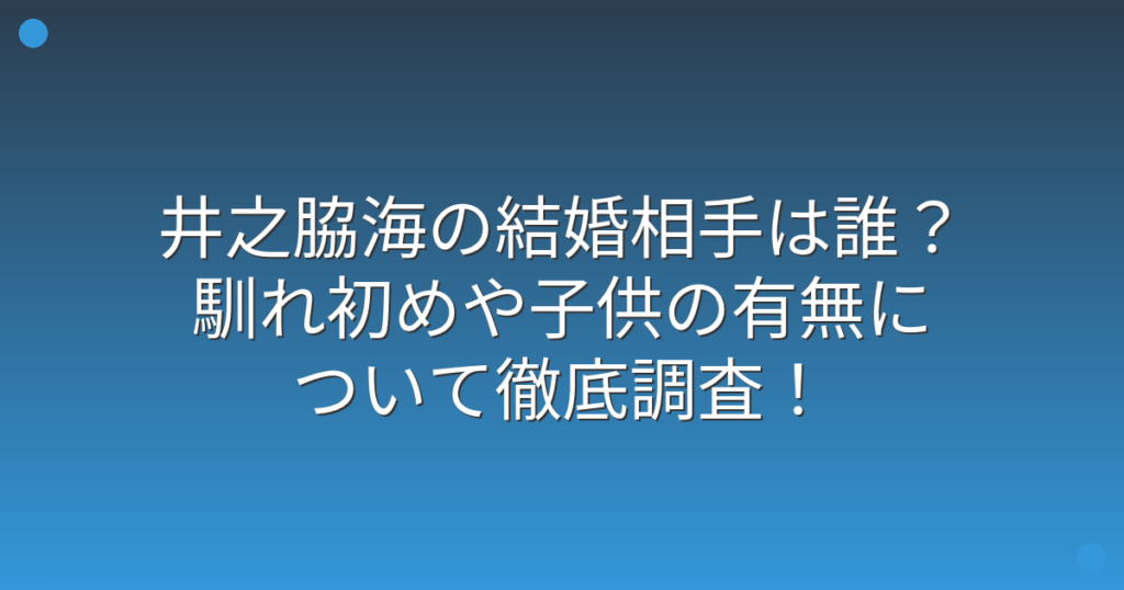 西山潤の結婚相手は誰?馴れ初めや子供の有無についても調査!