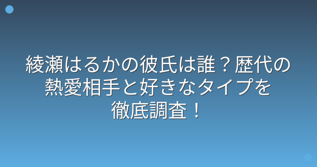 女優の綾瀬はるかさんの恋愛事情が、ファンの間で常に注目を集めていますね。 清純派女優として長年活躍されている綾瀬はるかさんですが、彼氏の存在や交際相手について気になる方も多いのではないでしょうか。 そこで今回は、綾瀬はるかさんの彼氏情報や... -