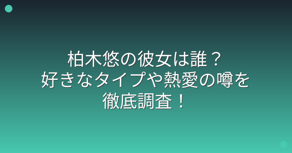 柏木悠の彼女は誰?好きなタイプや熱愛の噂を徹底調査!