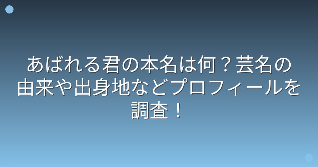 お笑いタレントとして活躍するあばれる君さんですが、本名が気になっている方も多いのではないでしょうか。 独特な芸名で知られるあばれる君さんですが、本名や芸名の由来について興味を持つファンが増えています。 そこで今回は、あばれる君さんの本名や... -