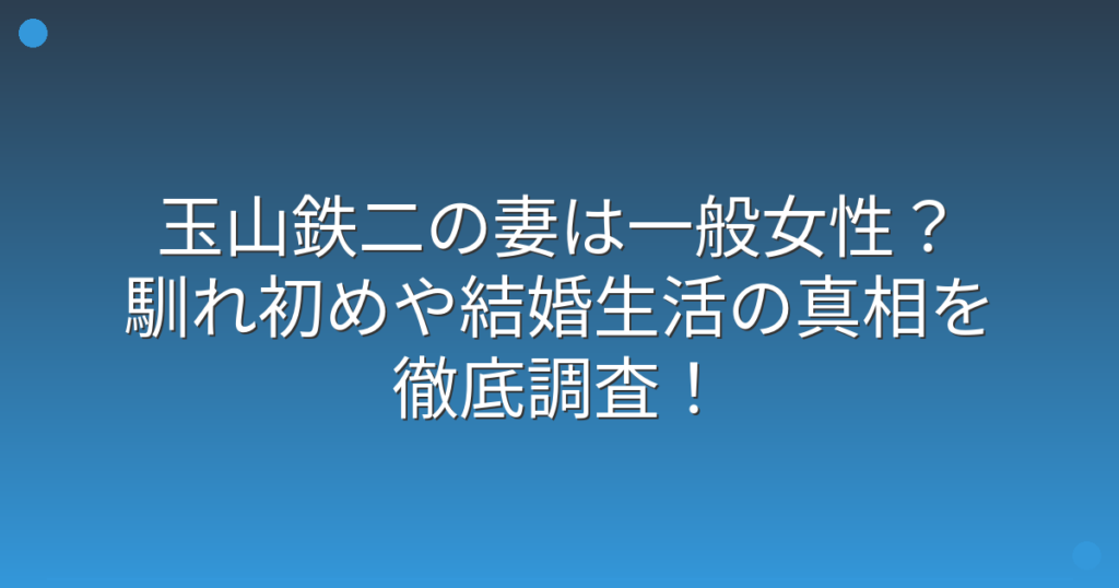 玉山鉄二の妻は一般女性?馴れ初めや結婚生活の真相を徹底調査!