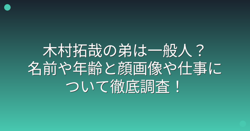 木村拓哉の弟は一般人?名前や年齢と顔画像や仕事について徹底調査!