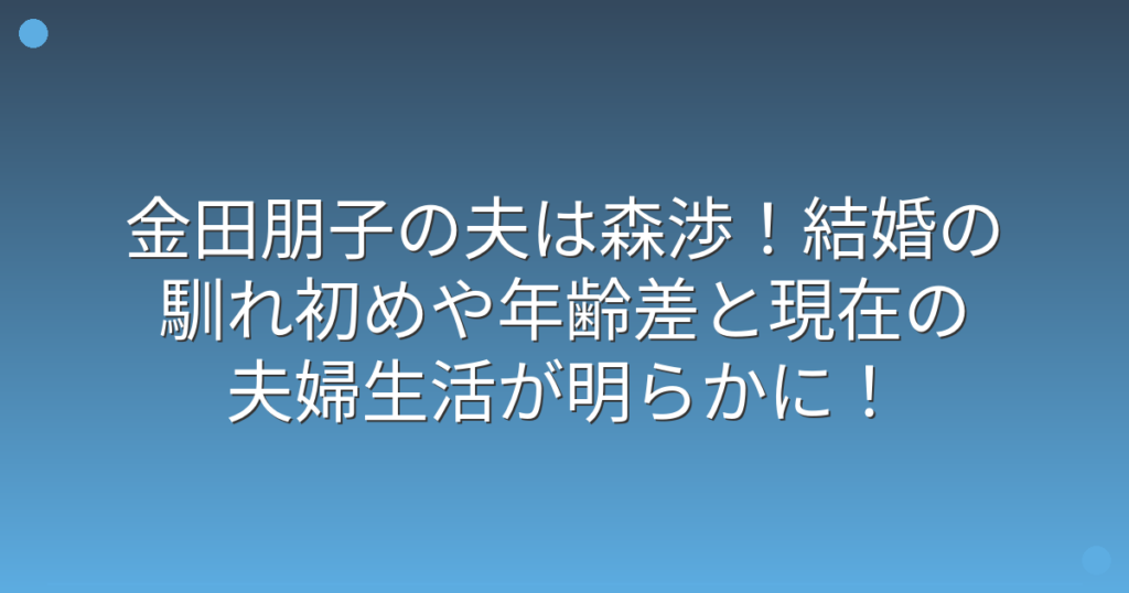金田朋子の夫は森渉!結婚の馴れ初めや年齢差と現在の夫婦生活が明らかに!