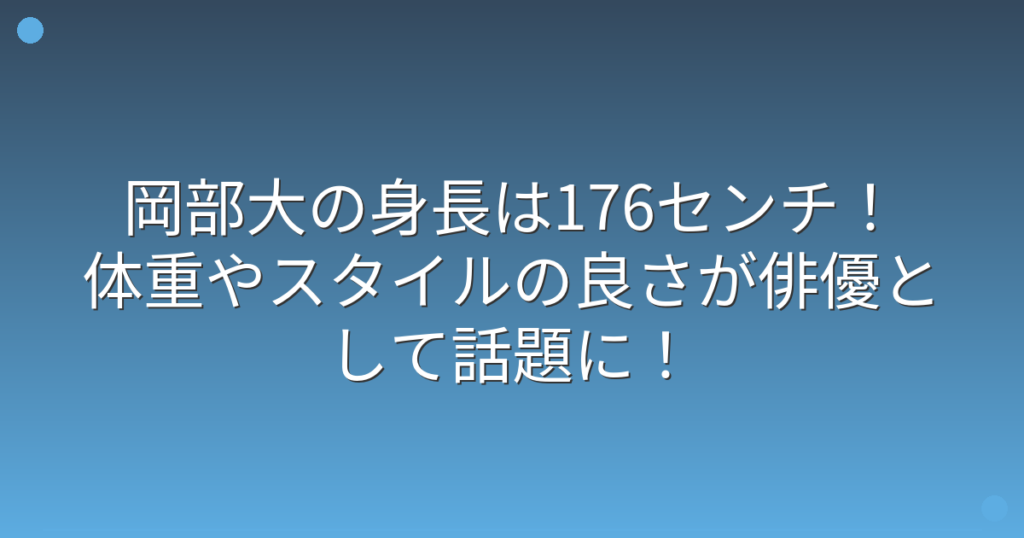 俳優として活躍する岡部大さんのスタイルの良さが注目を集めていますね。 特に身長や体型について気になっている方も多いのではないでしょうか。 そこで今回は、岡部大さんの身長や体重、そしてスタイルの秘密について詳しく見ていきましょう! 岡部大の身... -
