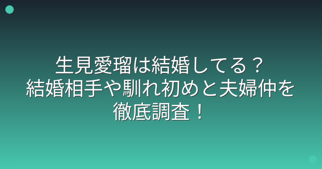 生見愛瑠は結婚してる?結婚相手や馴れ初めと夫婦仲を徹底調査!