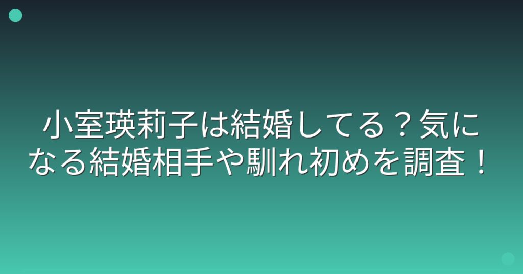 小室瑛莉子は結婚してる?気になる結婚相手や馴れ初めを調査!