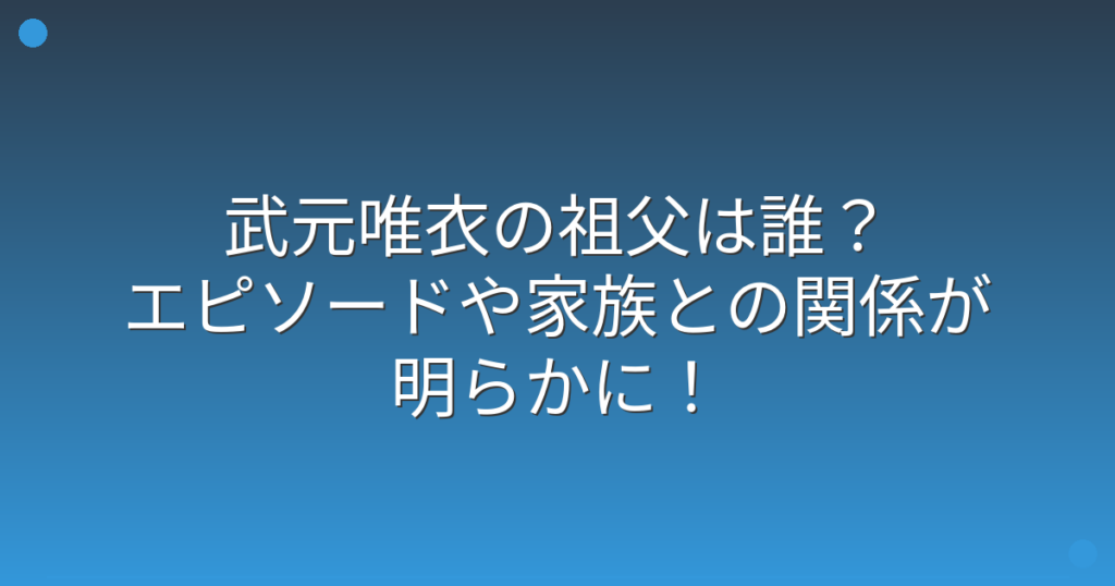 武元唯衣の祖父は誰?エピソードや家族との関係が明らかに!