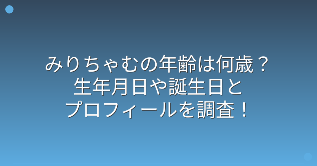 人気インフルエンサーとして活躍するみりちゃむさんの年齢について、ファンの間で話題になっていますね。 若々しい見た目と元気なキャラクターで多くの支持を集めているみりちゃむさんですが、実際の年齢や生年月日が気になる方も多いのではないでしょうか... -