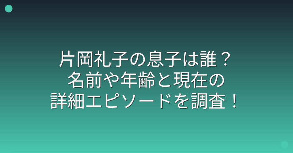 片岡礼子の息子は誰?名前や年齢と現在の詳細エピソードを調査!