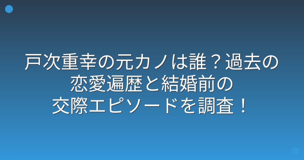 俳優として幅広い活躍を見せている戸次重幸さんですが、結婚前の恋愛遍歴について気になっている方も多いのではないでしょうか。 特に元カノについては、ファンの間でも話題になることがあります。 そこで今回は、戸次重幸さんの元カノや過去の恋愛エピソ... -
