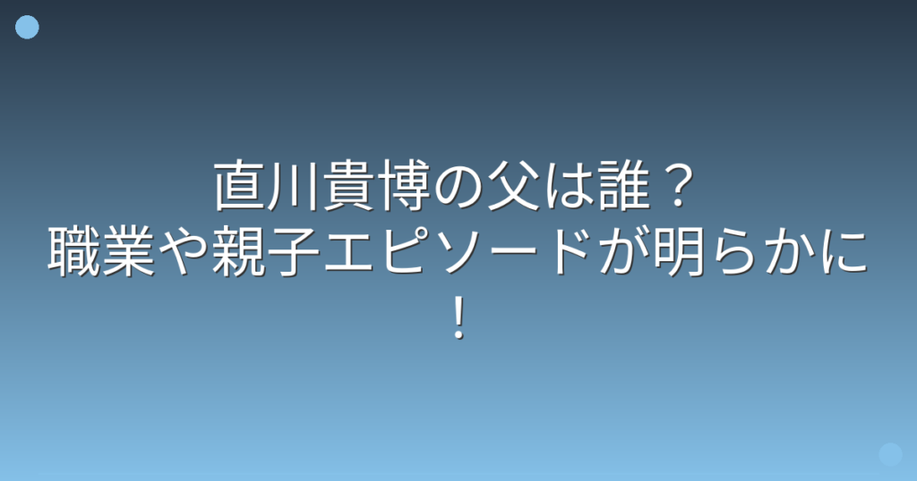 直川貴博の父は誰?職業や親子エピソードが明らかに!