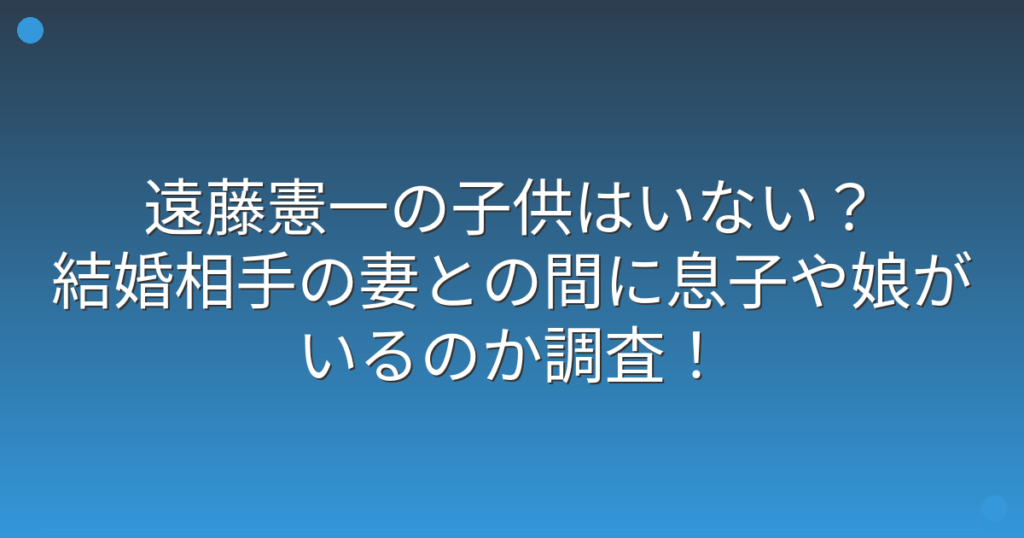 俳優の遠藤憲一さんといえば、数多くのドラマや映画で活躍する名バイプレイヤーとして知られていますね。 そんな遠藤憲一さんですが、プライベートでは結婚されているものの、子供についての情報があまり知られていません。 そこで今回は、遠藤憲一さんの... -