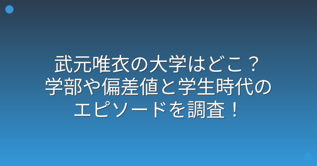 武元唯衣さんの大学について、ファンの間で話題になっていますね。 どこの大学に通っていたのか、どんな学生生活を送っていたのか気になる方も多いのではないでしょうか。 そこで今回は、武元唯衣さんの大学や学部、偏差値、そして学生時代のエピソードに... -