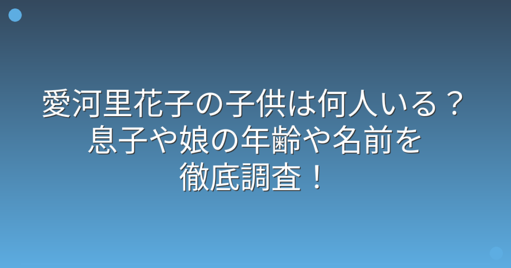 愛河里花子の子供は何人いる?息子や娘の年齢や名前を徹底調査!