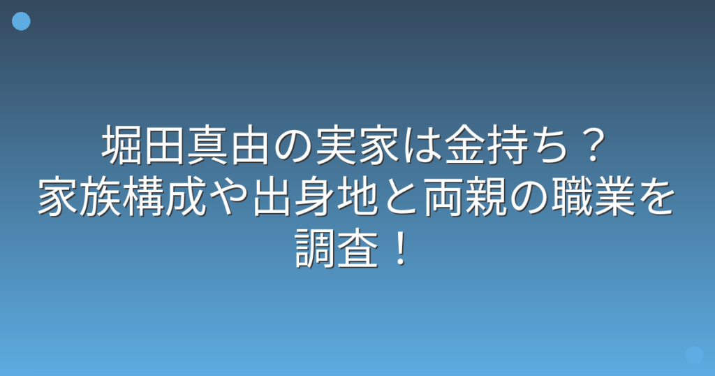 堀田真由の実家は金持ち?家族構成や出身地と両親の職業を調査!