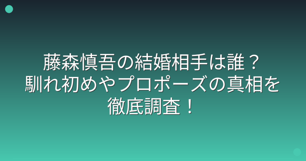 藤森慎吾の結婚相手は誰?馴れ初めやプロポーズの真相を徹底調査!