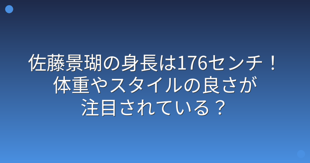 俳優として活躍する佐藤景瑚さんの身長やスタイルが話題になっていますね。 テレビや映画で見かける機会が増え、そのスタイルの良さに注目が集まっています。 そこで今回は、佐藤景瑚さんの身長や体重、そしてスタイルの良さについて詳しく見ていきましょ... -