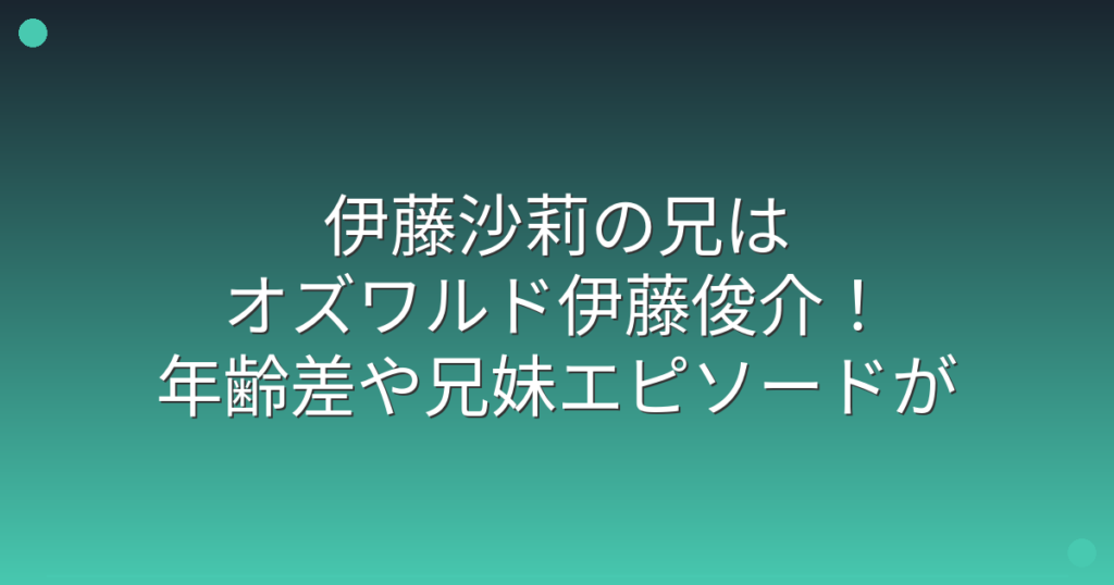 女優として大活躍中の伊藤沙莉さんですが、実はお笑いコンビ「オズワルド」の伊藤俊介さんが兄であることが話題になっていますね。 芸能界で活躍する兄妹として注目を集めており、二人の関係性やエピソードに興味を持つ方も多いのではないでしょうか。 そ... -
