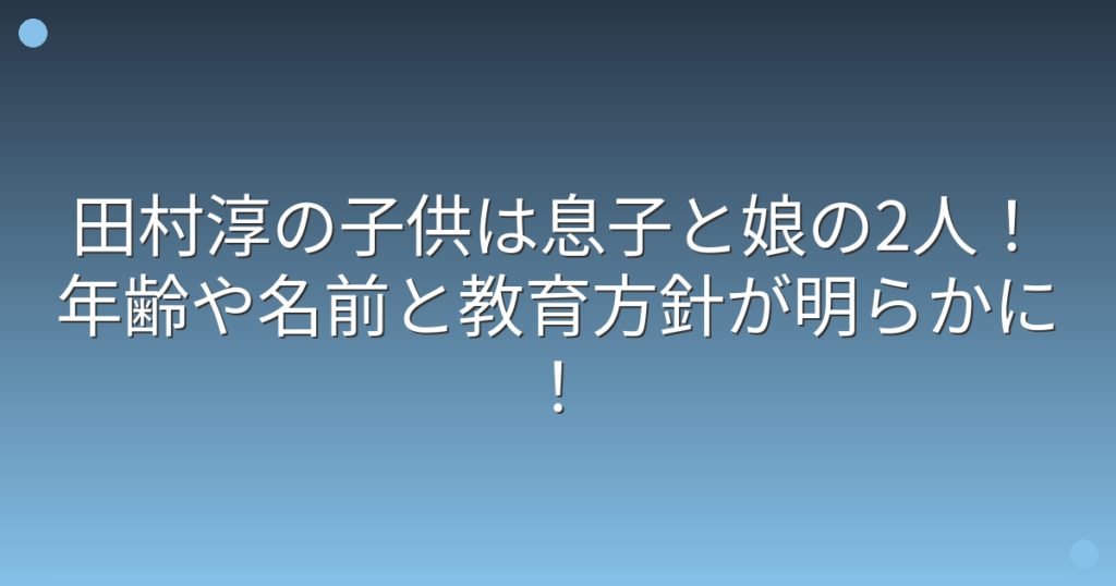 ロンドンブーツ1号2号の田村淳さんといえば、バラエティ番組で活躍する人気タレントとして知られていますね。 そんな田村淳さんの子供について、気になっている方も多いのではないでしょうか。 実は田村淳さんには2人のお子さんがいて、その教育方針なども... -