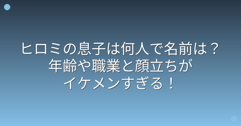 ヒロミの息子は何人で名前は?年齢や職業と顔立ちがイケメンすぎる!