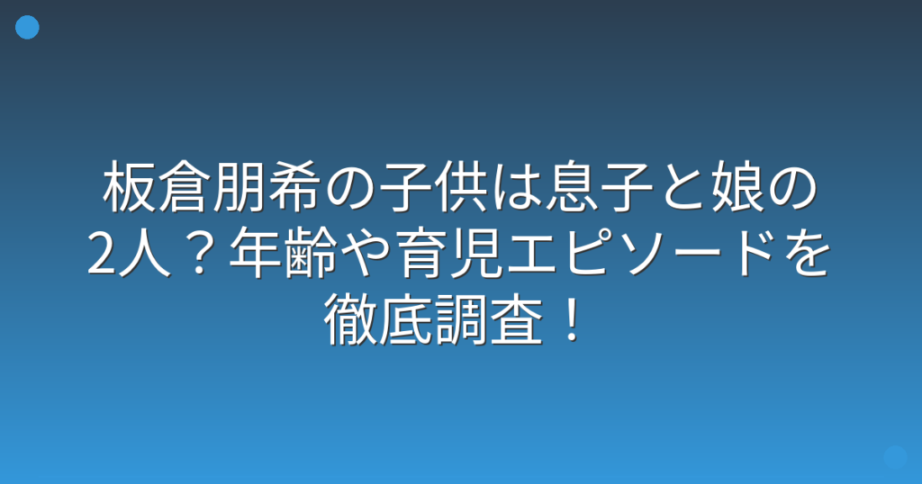 板倉朋希の子供は息子と娘の2人?年齢や育児エピソードを徹底調査!