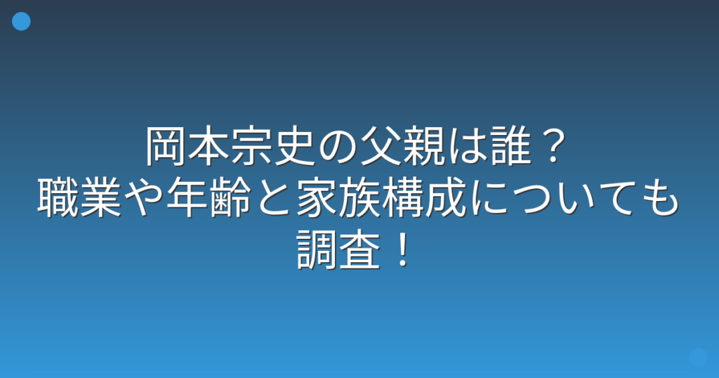 岡本宗史の父親は誰?職業や年齢と家族構成についても調査!