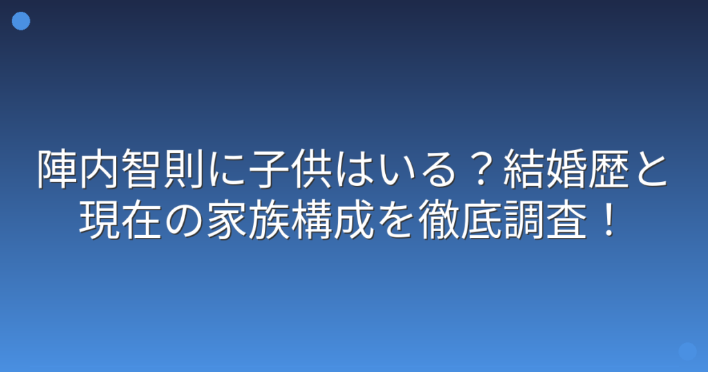 陣内智則に子供はいる?結婚歴と現在の家族構成を徹底調査!