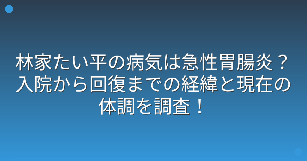 林家たい平の病気は急性胃腸炎?入院から回復までの経緯と現在の体調を調査!