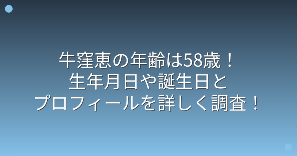 牛窪恵の年齢は58歳!生年月日や誕生日とプロフィールを詳しく調査!