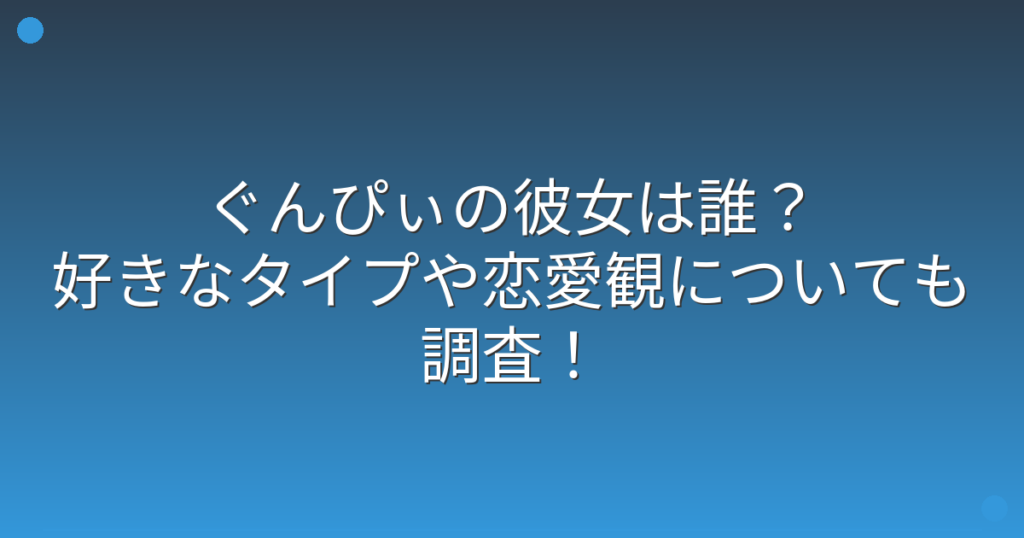ぐんぴぃの彼女は誰?好きなタイプや恋愛観についても調査!