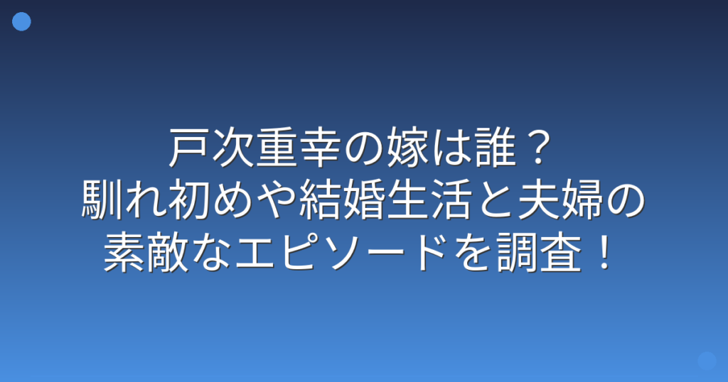 戸次重幸の嫁は誰?馴れ初めや結婚生活と夫婦の素敵なエピソードを調査!