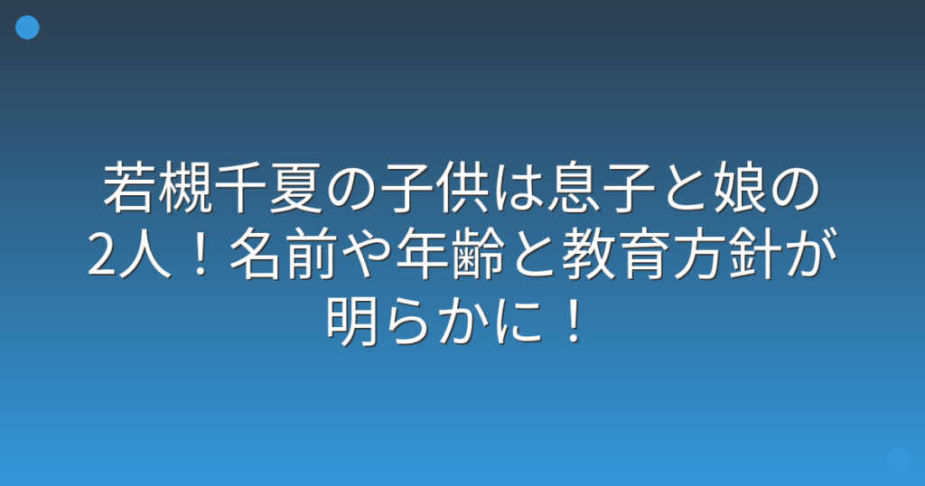 タレントとして活躍する若槻千夏さんの子供について、ファンの間で話題になっていますね。 若槻千夏さんは2人の子供を育てながら、仕事と家庭を両立されています。 そこで今回は、若槻千夏さんの子供の名前や年齢、そして注目されている教育方針について詳... -