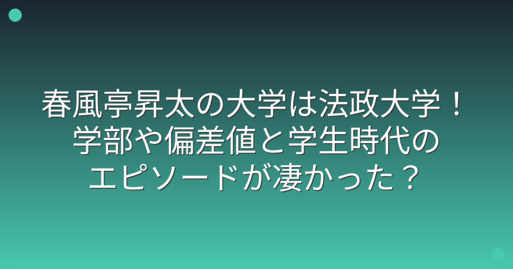春風亭昇太の大学は法政大学!学部や偏差値と学生時代のエピソードが凄かった?