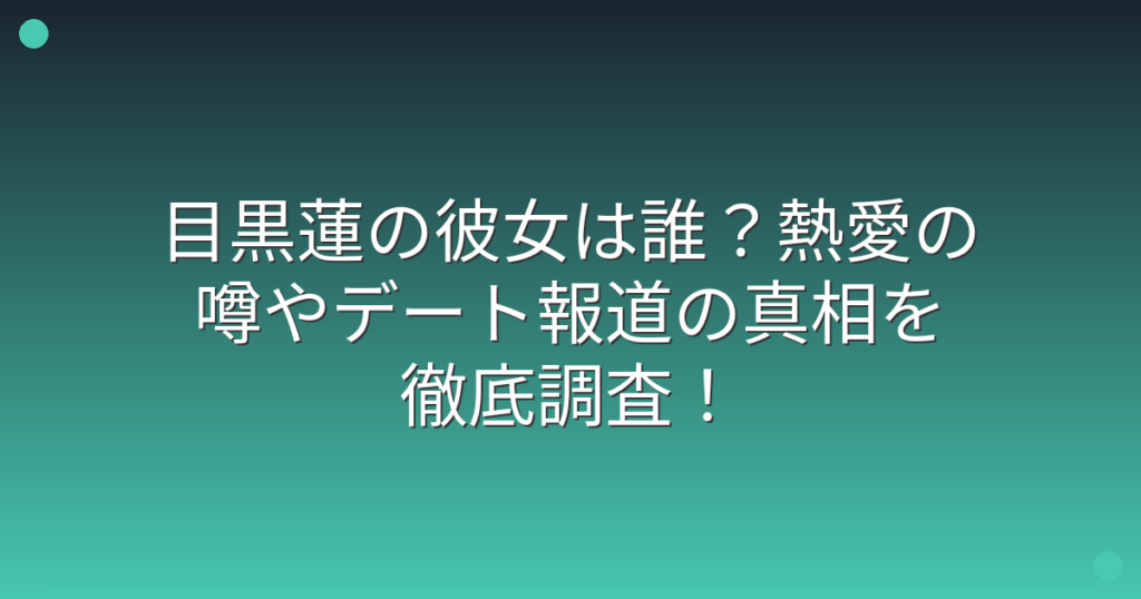 目黒蓮の彼女は誰?熱愛の噂やデート報道の真相を徹底調査!