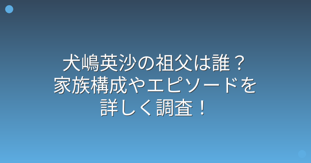 犬嶋英沙の祖父は誰?家族構成やエピソードを詳しく調査!