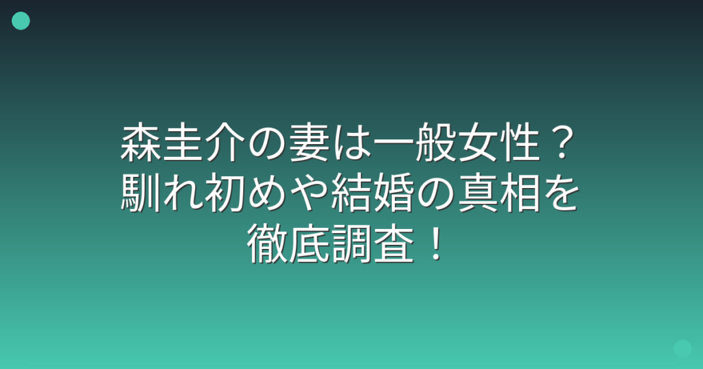 森圭介の妻は一般女性?馴れ初めや結婚の真相を徹底調査!