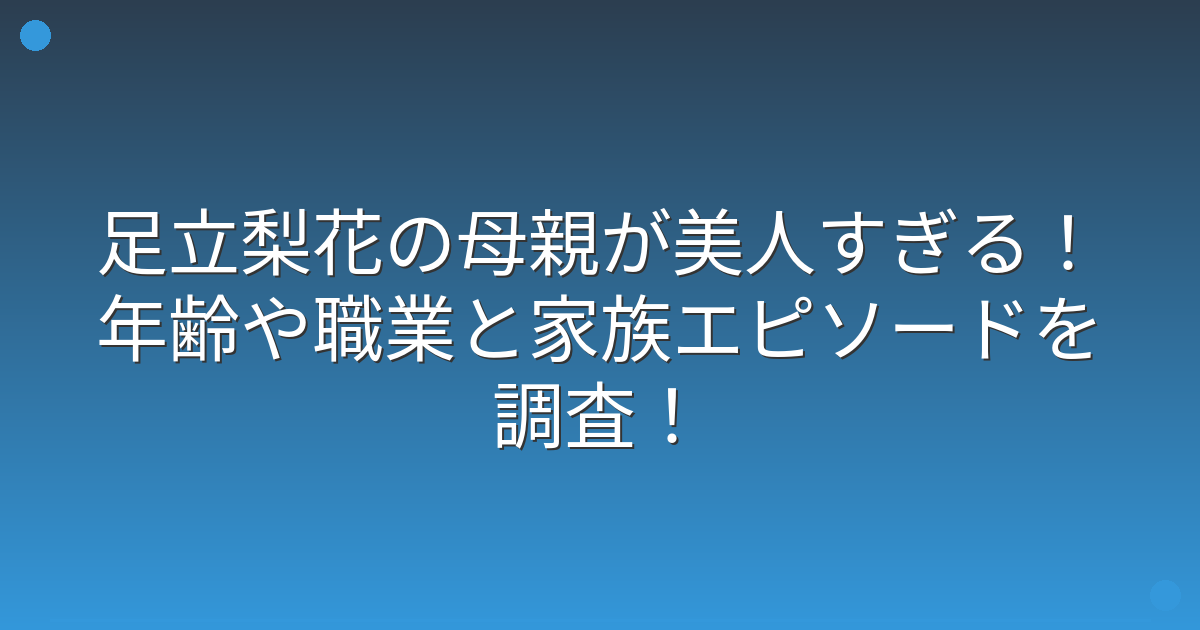 そこで今回は、足立梨花さんの母親について、年齢や職業、家族エピソードなど詳しく見ていきましょう!