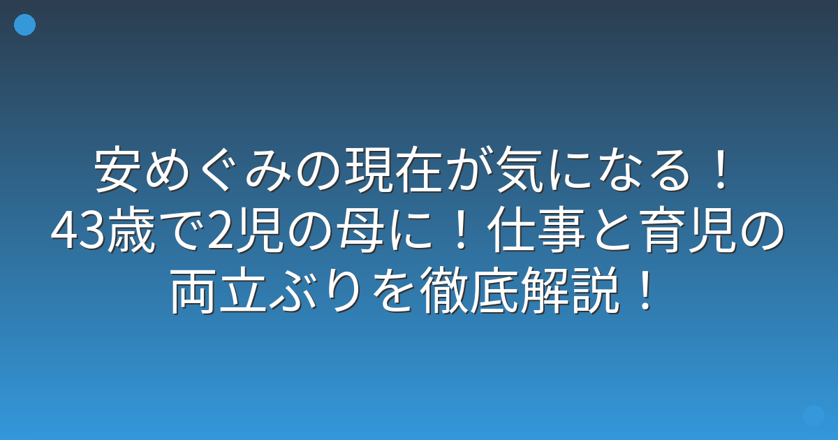 今回は、安めぐみさんの現在の活動状況や家族構成についてお伝えしてきました。