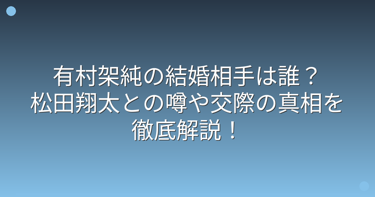 有村架純さんの結婚に関して、最も話題になったのが松田翔太さんとの関係です。