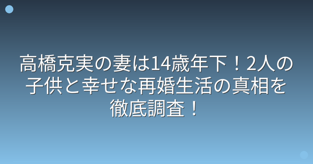 高橋克実の妻は14歳年下!2人の子供と幸せな再婚生活の真相を徹底調査!