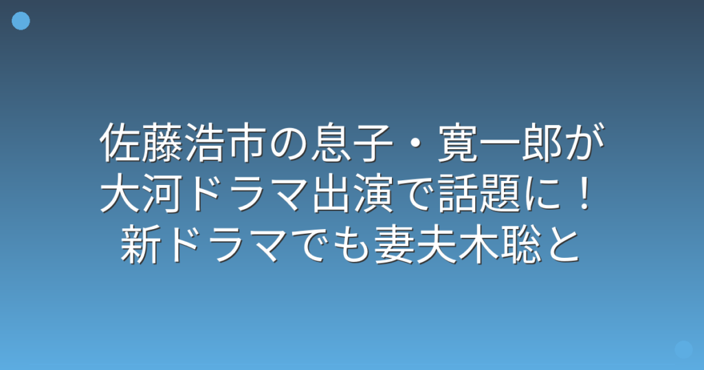 佐藤浩市の息子・寛一郎が大河ドラマ出演で話題に!新ドラマでも妻夫木聡と共演決定!
