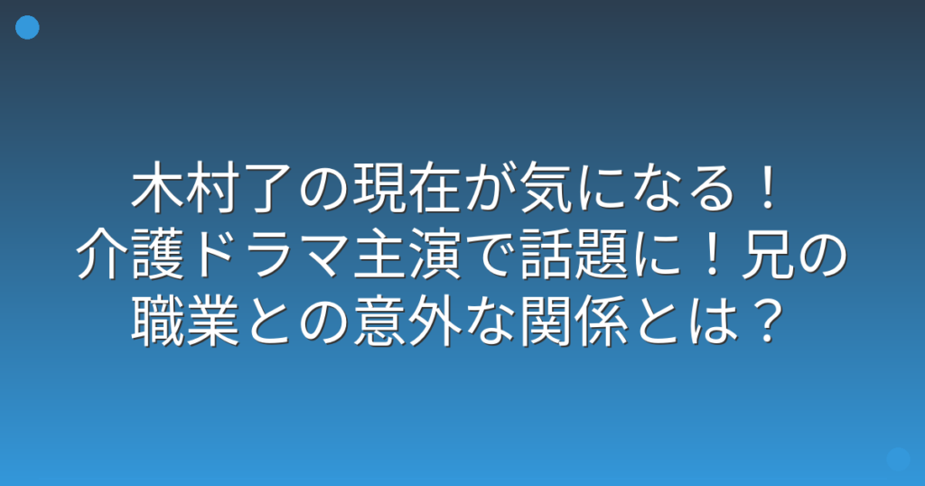 木村了の現在が気になる!介護ドラマ主演で話題に!兄の職業との意外な関係とは?