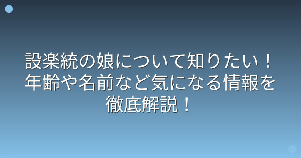 設楽統の娘について知りたい!年齢や名前など気になる情報を徹底解説!