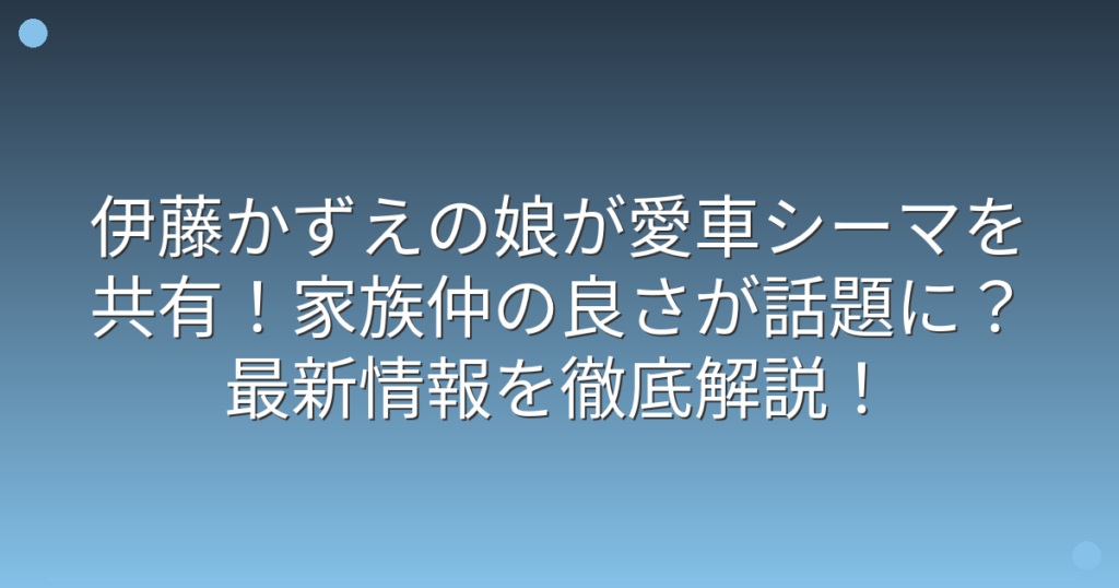 伊藤かずえの娘が愛車シーマを共有!家族仲の良さが話題に?最新情報を徹底解説!