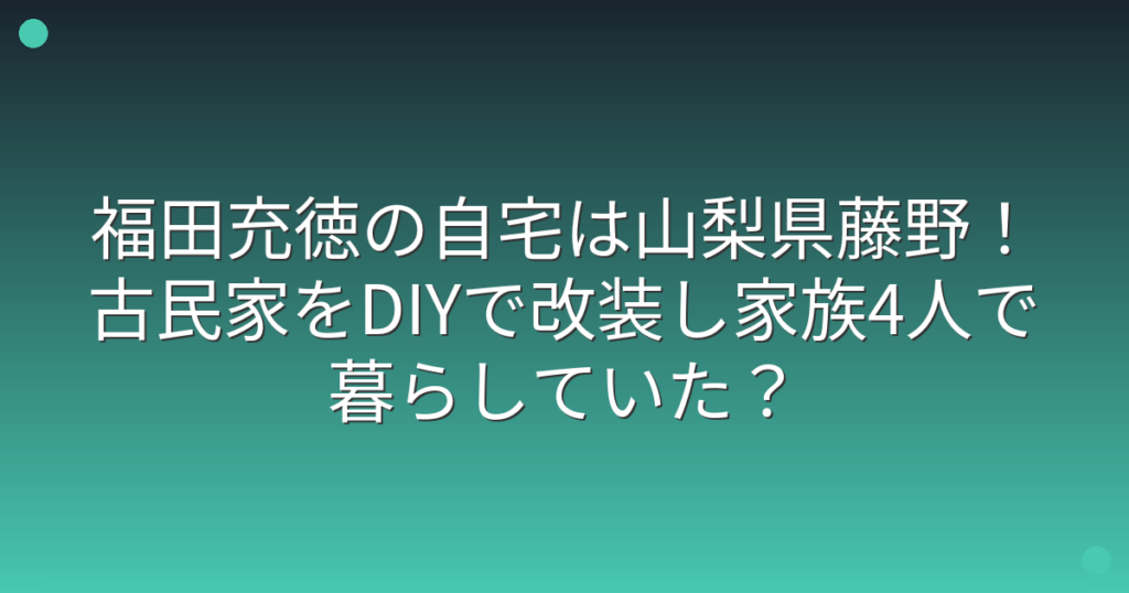 福田充徳の自宅は山梨県藤野!古民家をDIYで改装し家族4人で暮らしていた?