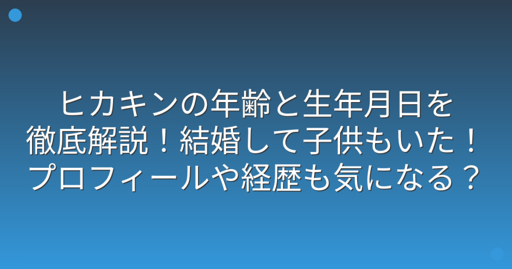 ヒカキンの年齢と生年月日を徹底解説!結婚して子供もいた!プロフィールや経歴も気になる?