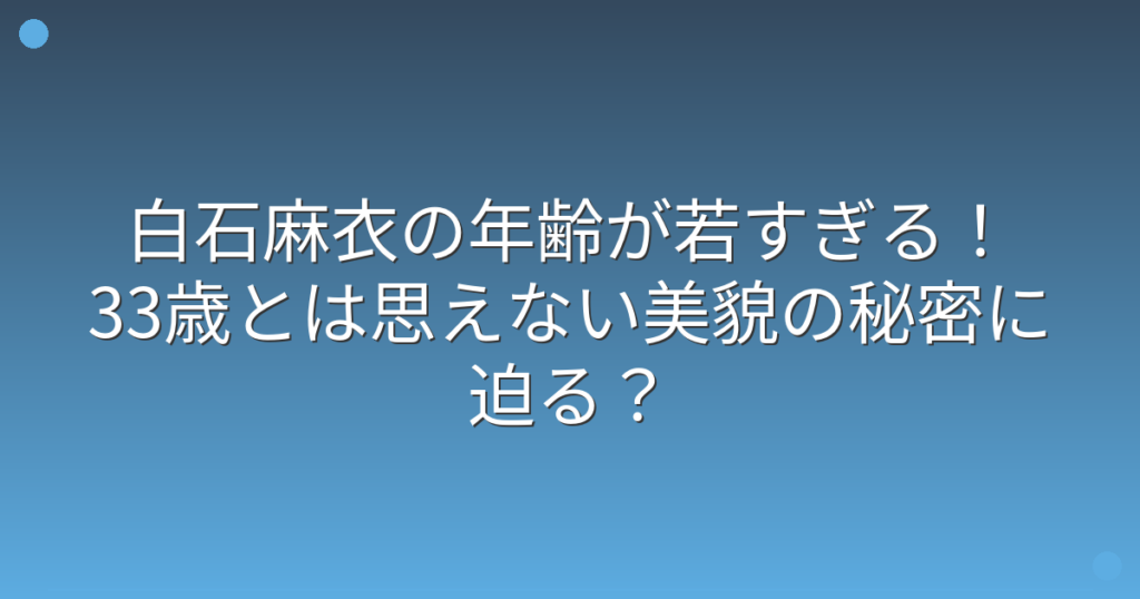 白石麻衣の年齢が若すぎる!33歳とは思えない美貌の秘密に迫る?