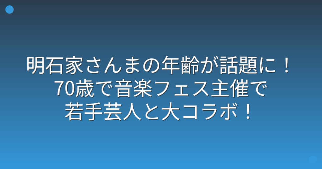 芸能界の重鎮・明石家さんまさんが、2025年に70歳という節目の年齢を迎え、大きな話題となっています。 特に、自身の古希を記念して開催された大規模な音楽フェスが注目を集めています。 そこで今回は、明石家さんまさんの年齢にまつわる最新情報や活動内... -